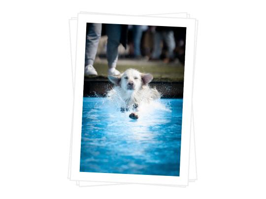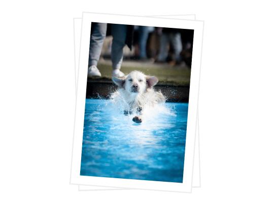 Alle Becken - vom Babybecken bis zum Schwimmerbecken - wurden von den wasserbegeisterten Hunden geentert. Spitz, Pudel, Dogge und Co. sprangen rutschten, schwammen und plantschten was das Zeug hält.