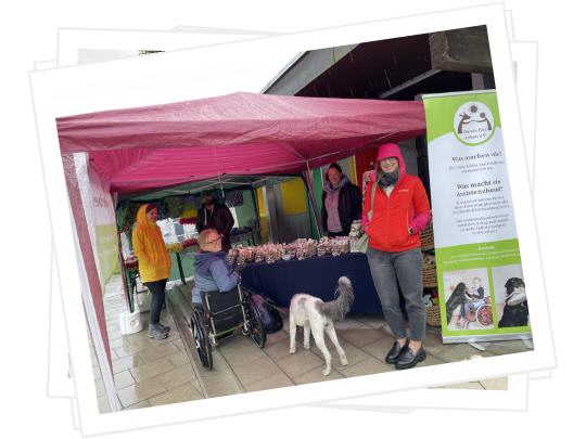 | Hunde für´s Leben e.V. ist ein gemeinnütziger Verein, der Assistenzhunde für Menschen mit Behinderung ausbildet, die die hohen Ausbildungskosten von bis zu 30.000 Euro nicht selber tragen können. Außerdem berät er zu sämtlichen Fragen im Zusammenhang mit Assistenzhunden und leistet Aufklärungsarbeit. Unterstützen Sie uns, indem Sie bei uns Hundeleckerlis, Spielzeuge und Schnüffelteppiche kaufen. https://hundfuersleben.de |